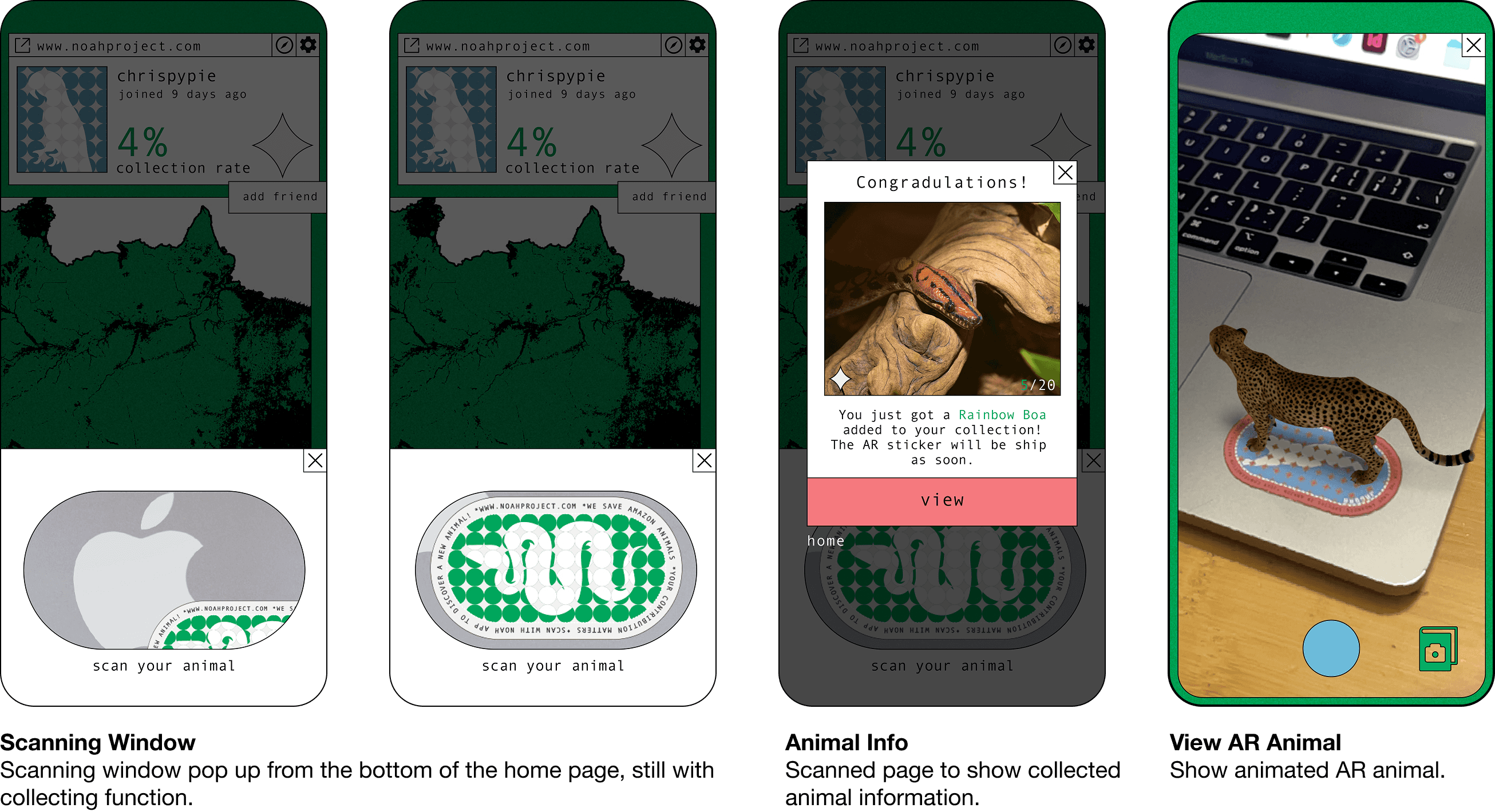 The Noah App serves as the interface between urban reality and the Amazonian wild. By scanning the sticker’s scannable visual code—an aesthetic arrangement inspired by the seamlessness of modern mobile cameras—users unlock an immersive AR experience.