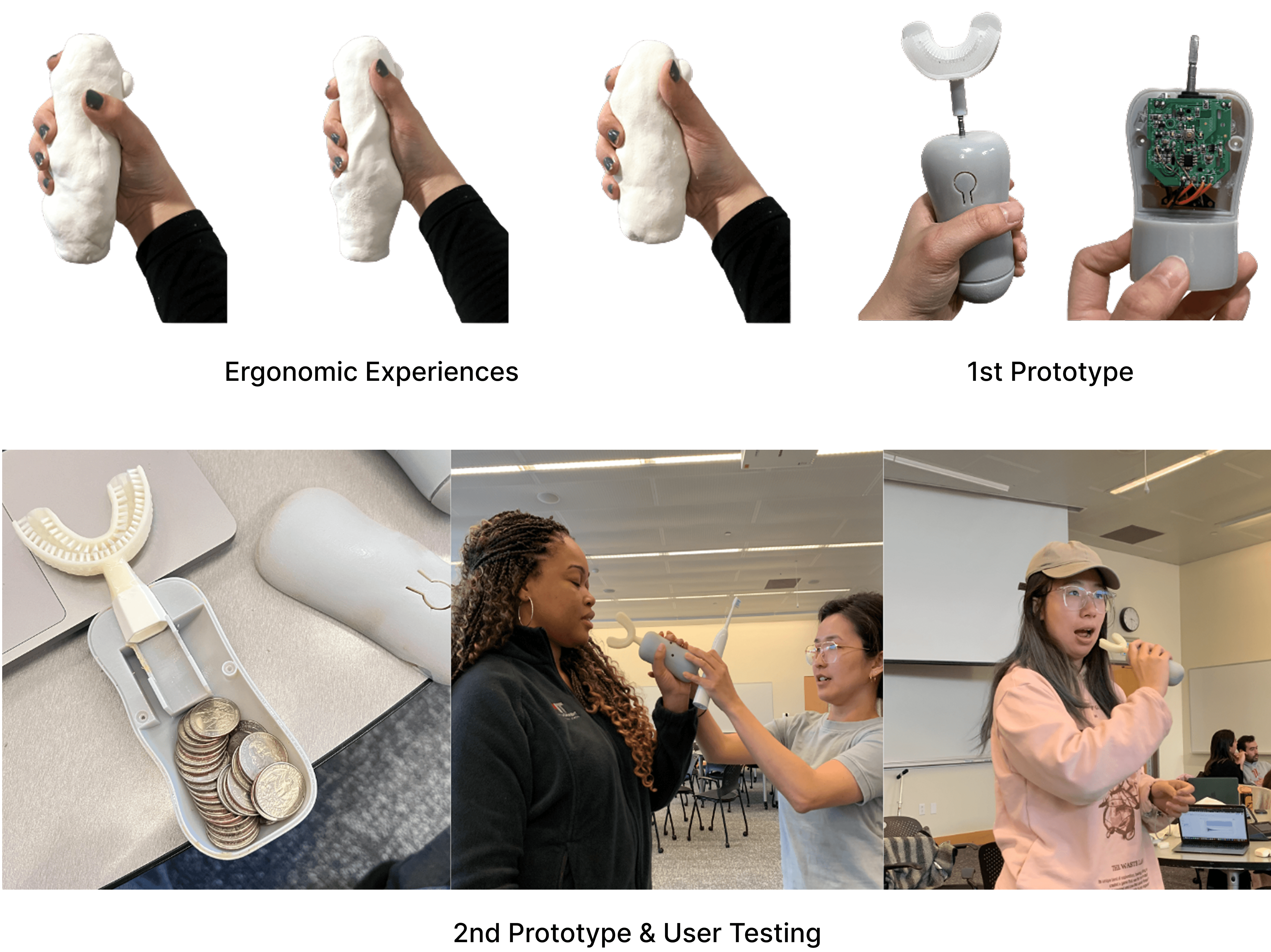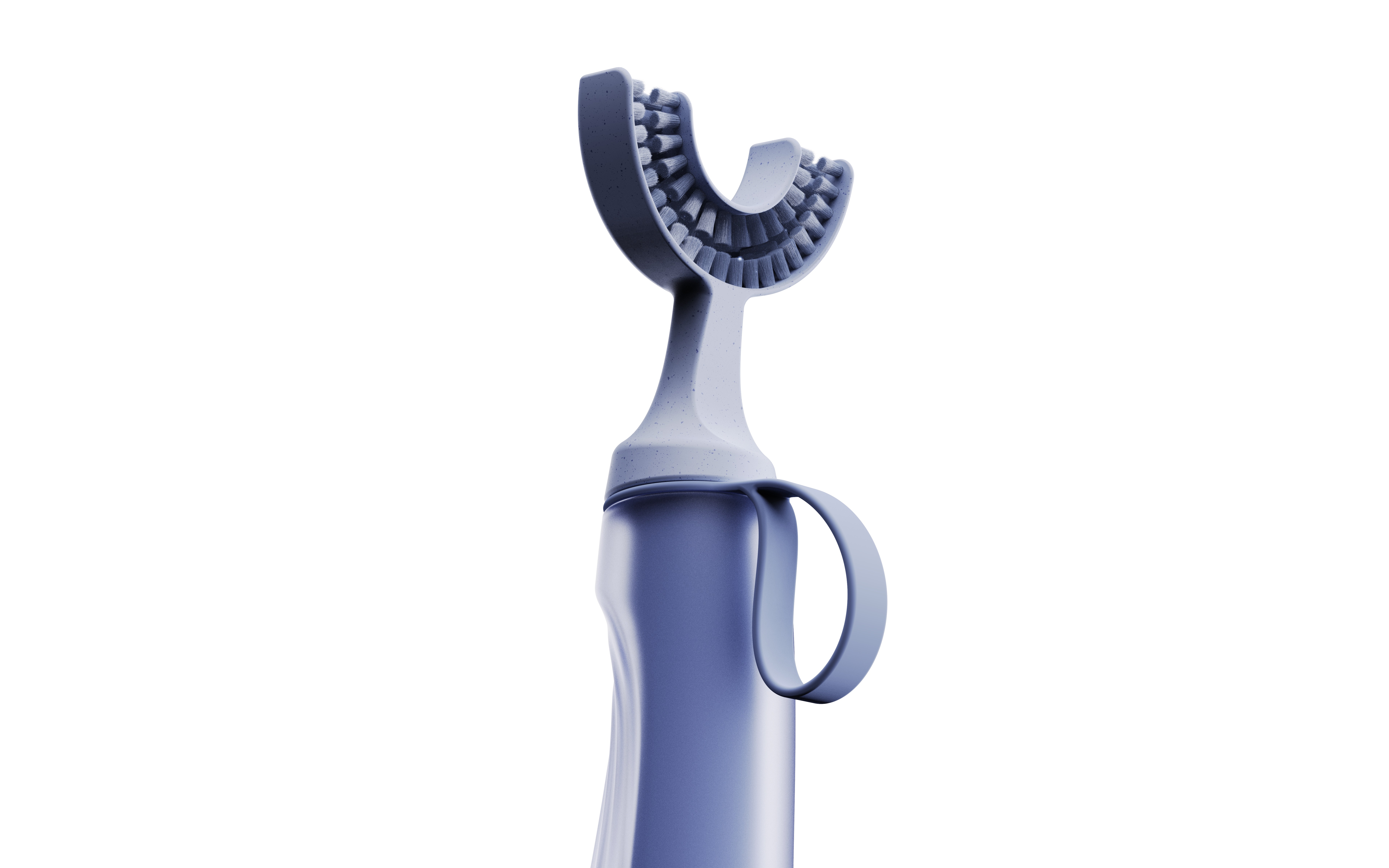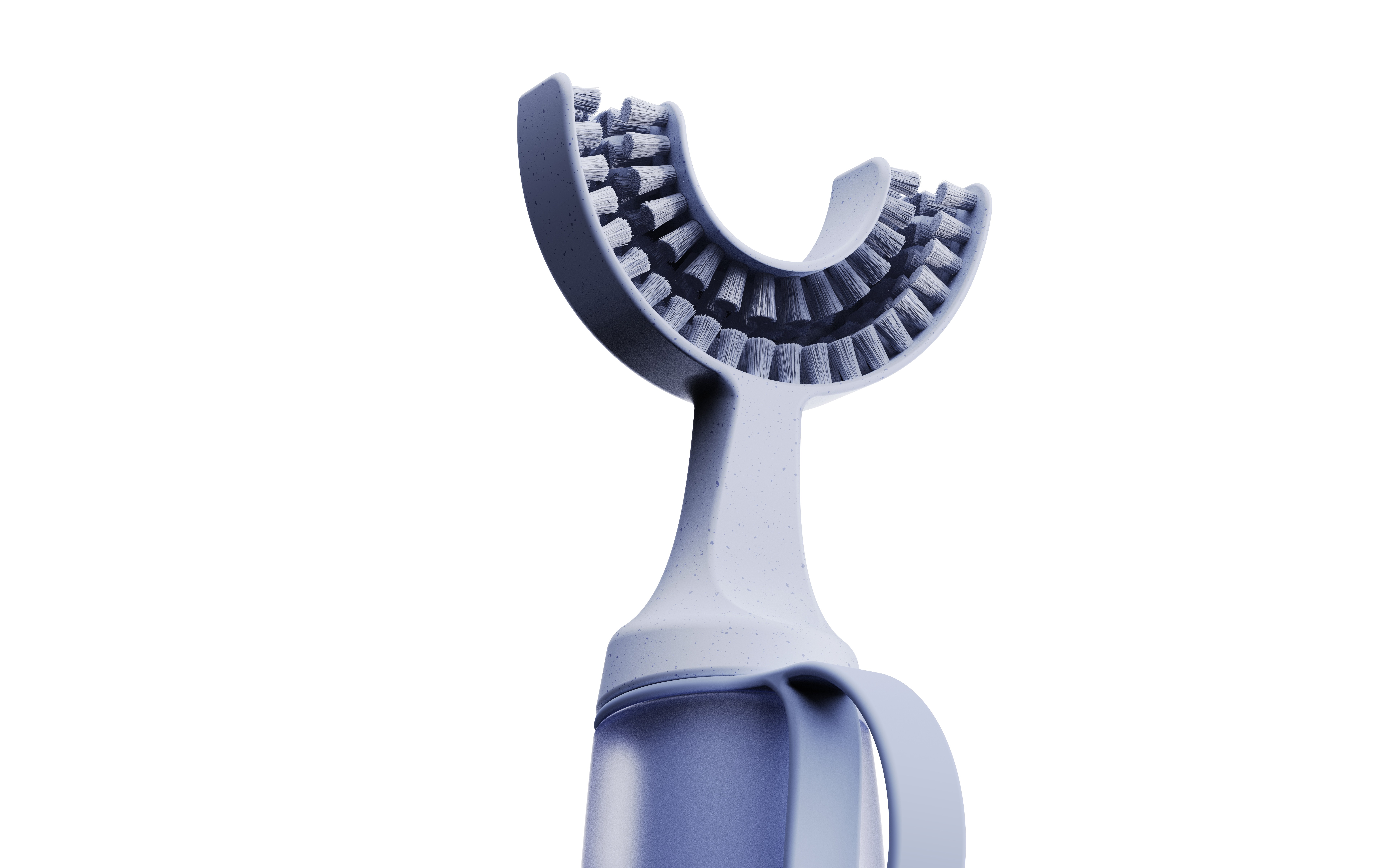 Through numerous iterations, the arc geometry was fine-tuned to balance comfort with cleaning efficacy. Prototyping focused on the transition between the solid internal core—housing the vibration motor and counterweights—and the translucent outer shell that defines the user interface.